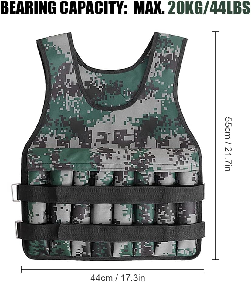 - Loading Up to 20KG: Constructed from high-quality 600D coated fabric material, this weighted vest is firm, wear-resistant, and heavy-duty. It offers a maximum loading capacity of up to 20KG, making it suitable for various strength training exercises.